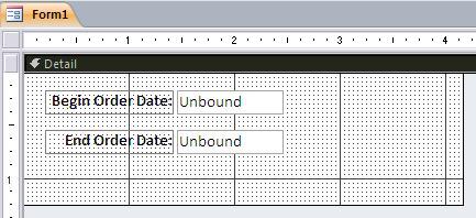5. Change the caption in the label to be more descriptive (for example, Begin Order Date). Modify the second label (for example, End Order Date).