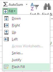 In the example above pressing the Enter or Return key on your keyboard will populate the rest of column I as suggested by Flash Fill. In addition to the method above you can actively force a Flash Fill from your Home Tab.